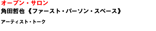 「エマージェンシーズ!005」において9月2日まで《ファースト・パーソン・スペース》を展示している作家 角田哲也のアーティスト・トークを開催します.《ファースト・パーソン・スペース》は,仮想現実感のしくみを利用して,鑑賞者の観察行為によって収束・分岐する空間モデルを提示する作品です. このイヴェントでは,建築や情報学,VJカルチャーなど,多様なバックグラウンドを横断する角田が,《ファースト・パーソン・スペース》の制作のコンセプト・背景・展開など様々な観点から語ります.また,《ファースト・パーソン・スペース》の原型となった彼の映像作品を上映し,これまでの制作の経緯や着想などを自ら語ります. さらに,多くの雑誌で活躍し,かつ古くから角田の作品を発見していた建築ライターの平塚桂をゲストとして迎え,角田哲也の作品とその周辺の状況について,幅広い話題からお話していただきます.