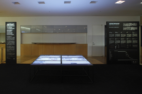 この衛星芸術プロジェクト『ARTSAT:イントロダクション』では,衛星の打ち上げに先立ち,このプロジェクトで行なわれようとしているさまざまな計画案を社会に提案することで,その意味や可能性を議論する場となることを目的としています.展示は,衛星に関する基本情報を紹介する『マンメイド・ムーン』,衛星芸術表現に関する実験と制作を行なう『フィジカル・サテライト』,衛星およびその開発プロセスを展示する『アートサット1:インヴェーダー』の三期に分けて展開されます.