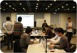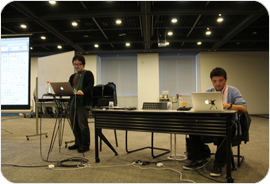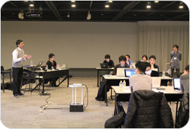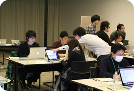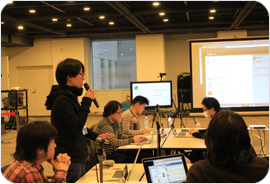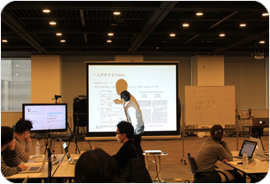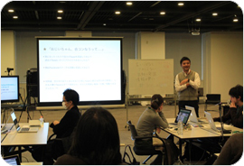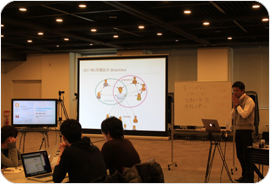 今回のワークショップは1日4時間ずつ2日間に渡って行ないましたが,徳井氏と田所氏には両日を担当していただき,ワークショップの内容構成は連続した8時間という認識で組み立てていただきました.「思考編」「実践編」という大きな軸は保ちつつ,徳井氏と田所氏の連携による思考と実践を織り交ぜたワークショップとなりました.