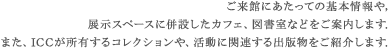 ご来館にあたって,ICCの開館時間などの基本情報をご案内します.