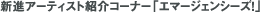 今後期待されるアーティストやクリエイターの最新の作品やプロジェクトをいち早く展示するコーナーです.年間4回,アートや科学の新しい可能性を開いていく実験的な表現を幅広く紹介していきます.