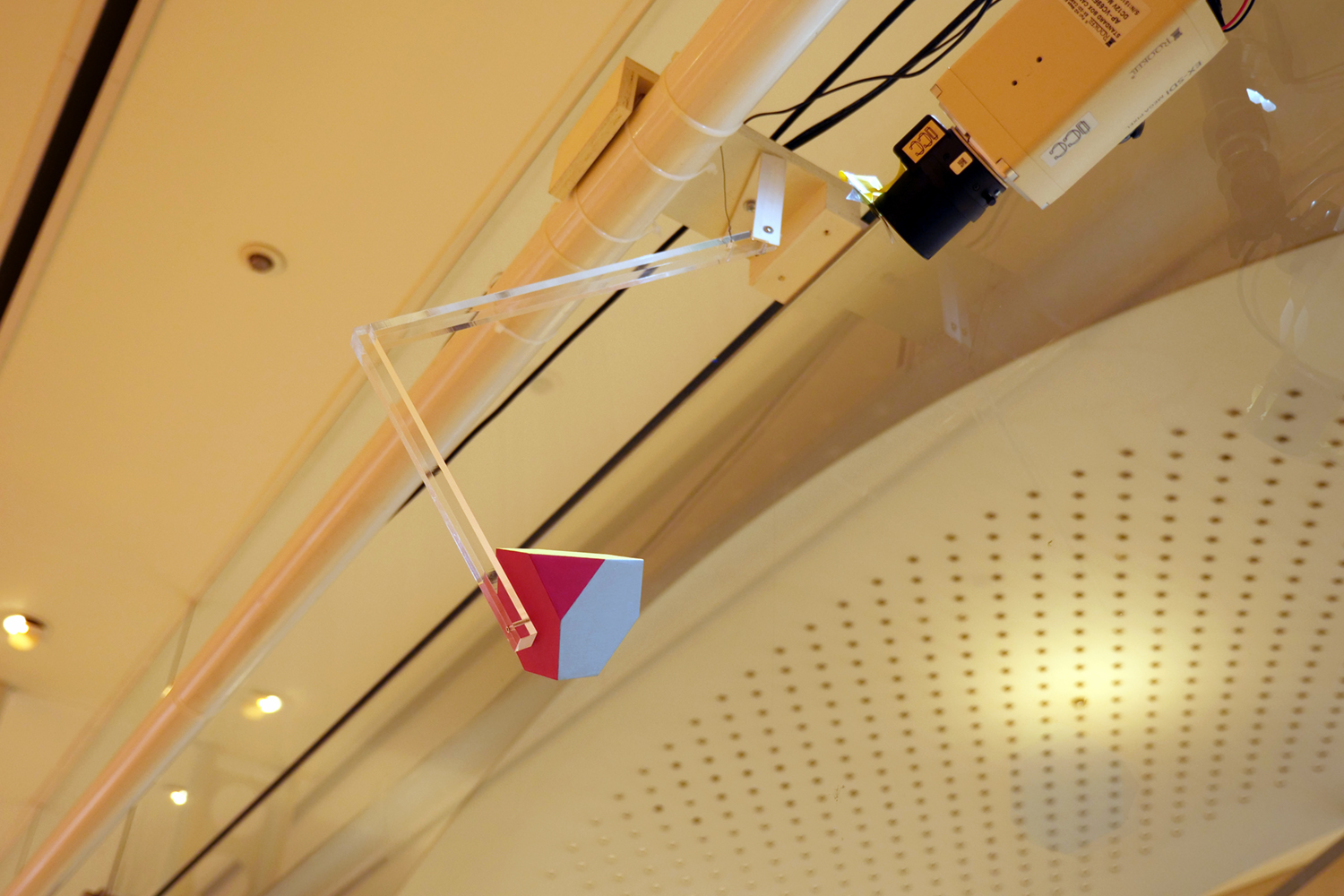 また一部のオブジェは触って動かせるようになっており,映像を見ながら他の場所にあるオブジェと向きや色がピッタリ重なるように動かすことが,作品の体験に含まれています.