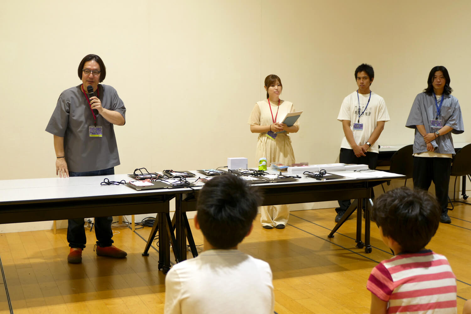 今回ファシリテーターを務めたa-semiの皆さんはIAMASの在学生で,今年度のキッズ・プログラムの共同キュレーターであり,AR技術を用いた音声ガイドのシステム,AR Audio Guideの開発を監修している赤羽亨さんの教え子でもあります.