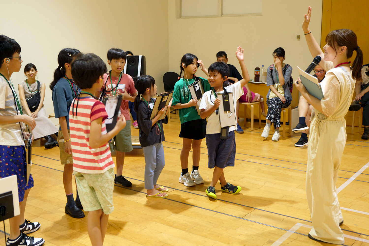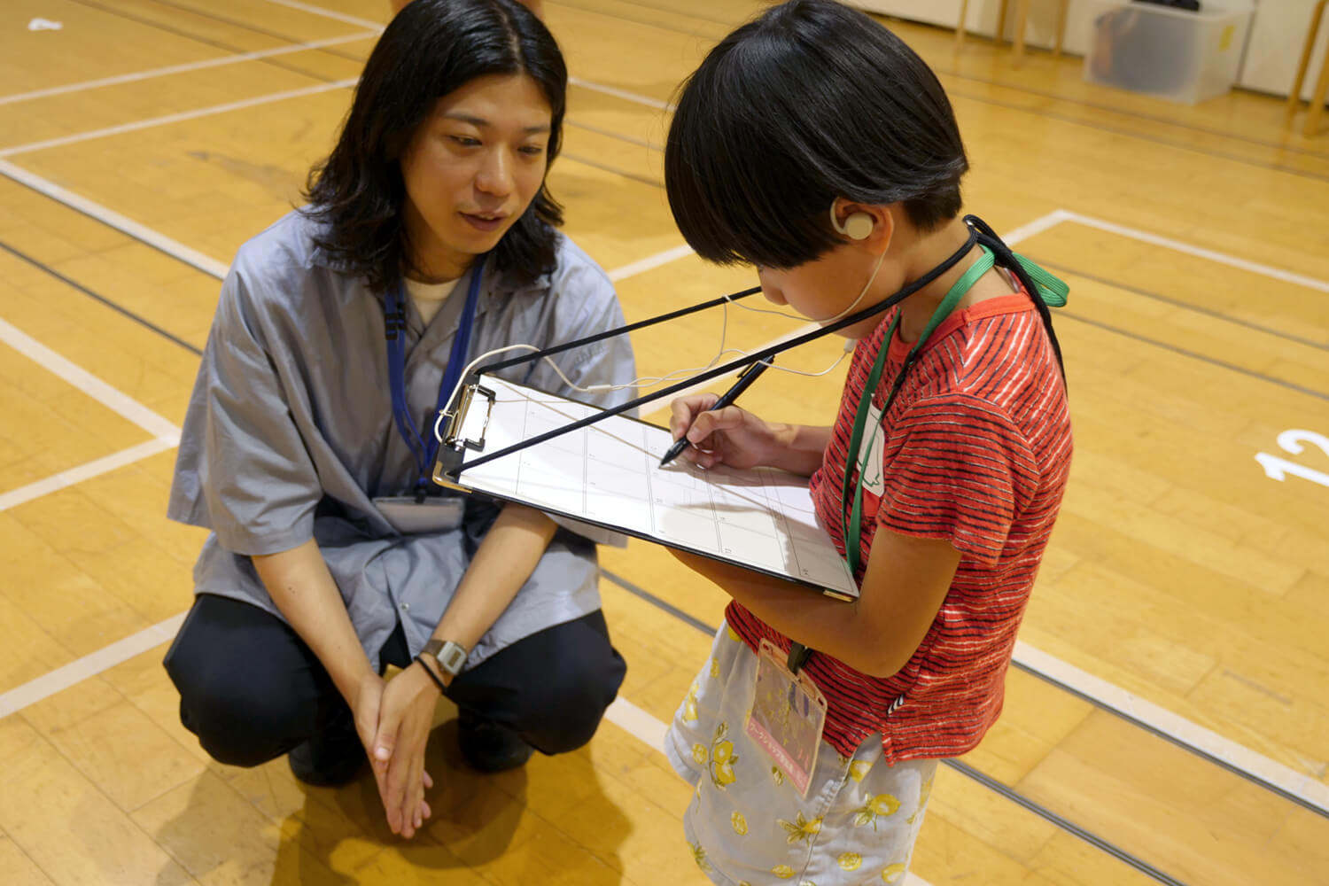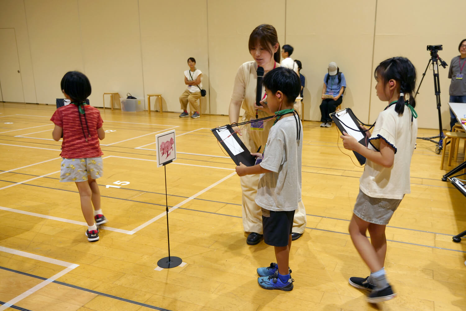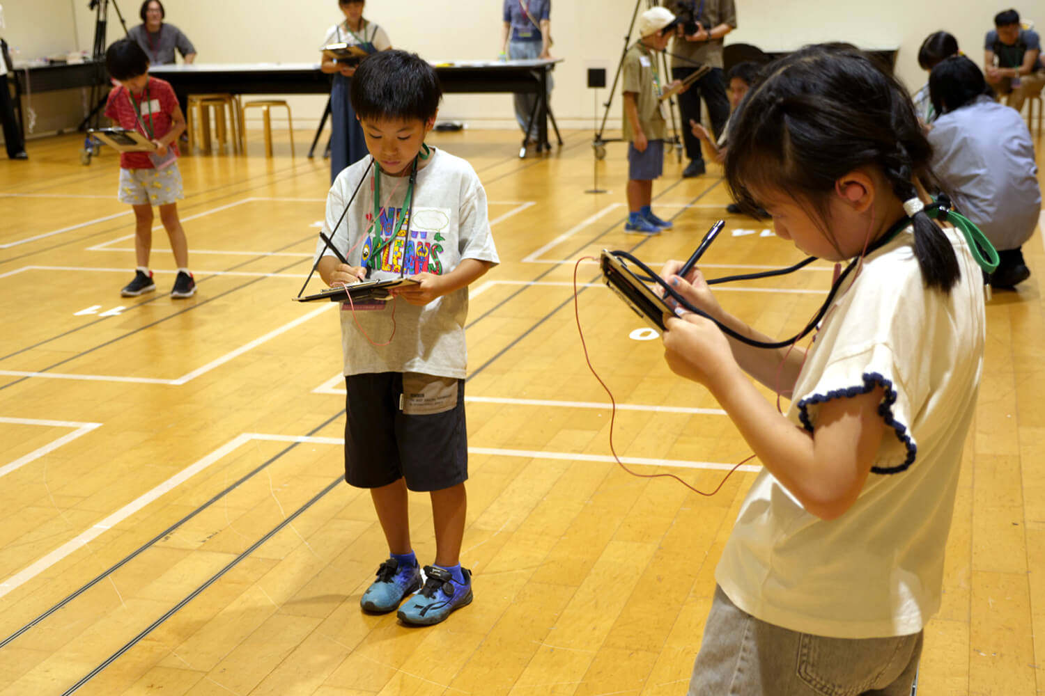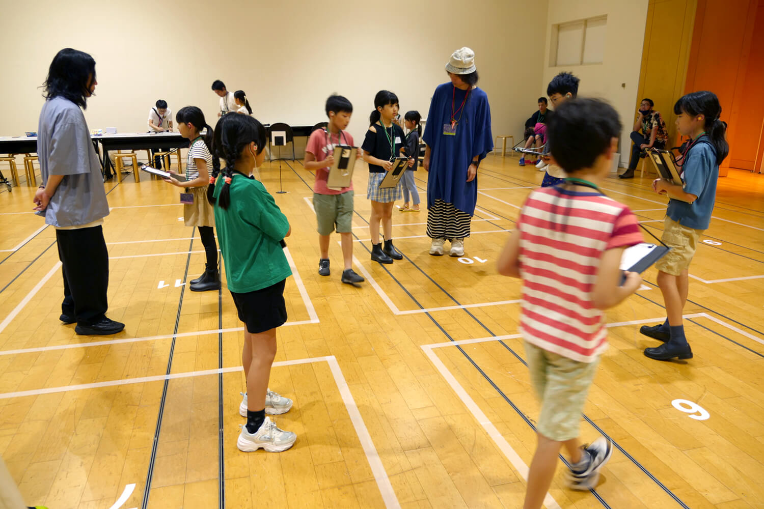 参加したお子さんたちには,各自AR Audio Guideの端末とイヤホン,クリップボードが配られました.