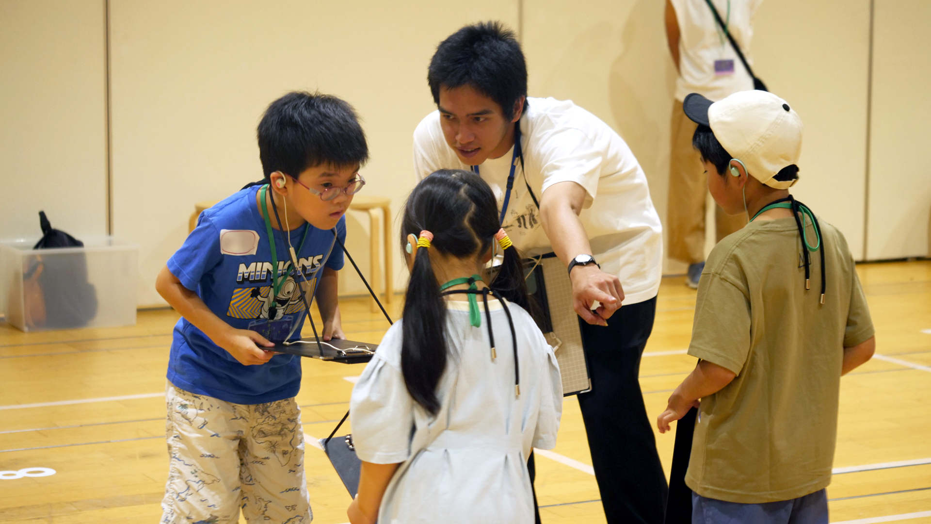 ファシリテーターが近くでフォローをし,音の聞こえ方を確かめながら,多くの子が早い段階でAR Audio Guideの使い方を直感的に理解できている様子でした.