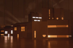 このテクノロジーにコントロールされた同一性とプライバシーという考えが融合して,《エンズヴィル》というコンセプトが生まれた.宇宙から見たコミュニティ全体は未来の幻想的なオーケストラで,それぞれの家が楽器であり,住人がデジタルメロディを奏でているというものだ.