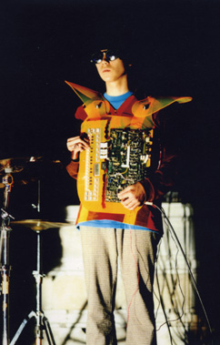 ニューヨークに滞在していた時期に制作された,実際に着用できる透明のジャケットにアナログ・シンセサイザーを取りつけた作品.