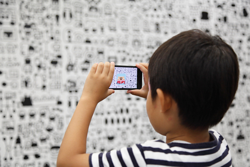 パネルや立方体に描かれた,かわいらしいいきいきとした表情で,今にも動きだしそうなキャラクターたちは,人や動物のように見えたり,建物や乗り物のようにも見えるかれらが集まると思いがけない出来事が起こります.