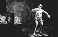 - 「第3の手」やグラストロンを装着し,全身に各種センサーの端末を張りめぐらしたステラークは自身の筋肉をコントロールしながら,また自分の意識を超えた他人から電送されてくる刺激(コレオグラフ)によって痙攣しながら,身体とテクノロジーのきしみを思わせるようなサウンドを放出した.